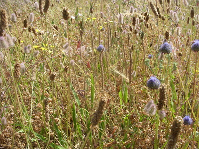 Como espaço não me falta, na sobrante parte estou a instalar um prado florido. Dá-me um gozo especial ver o contraste entre a zona aparada do prado de sequeiro e a zona bravia do prado florido. Na linha do meu jardim autóctone, o prado florido vai incrementar a biodiversidade presente no meu jardim.